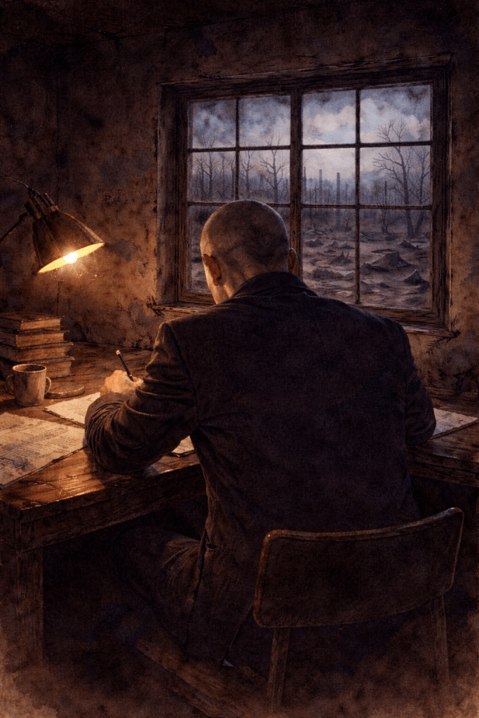 I am writing this as I stare into the wake of destruction I have caused. All I have now is a few books and a sturdy desk. The note and I are likely to be burned along with everything else.